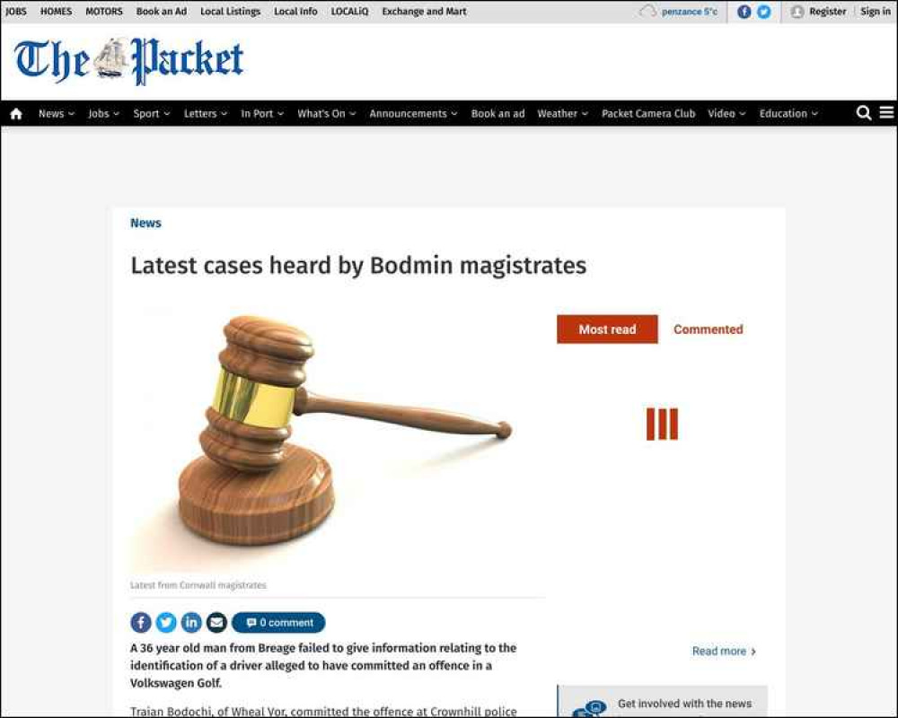 A 36 year old man from Breage failed to give information relating to the identification of a driver alleged to have committed an offence in a Volkswagen Golf....